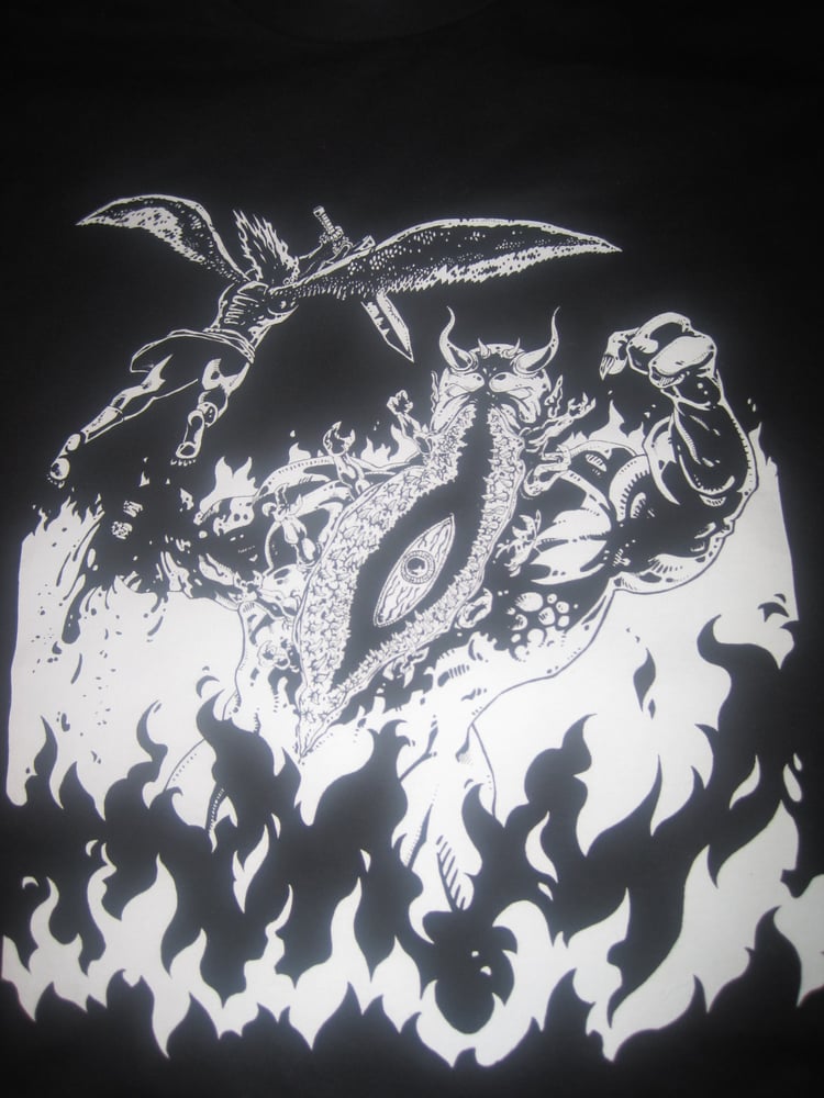 Hand drawn flat printed 100% cotton black t-shirt. Available in M,L and XL. Print will be smooth after washing.